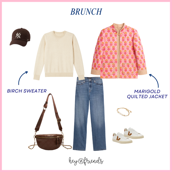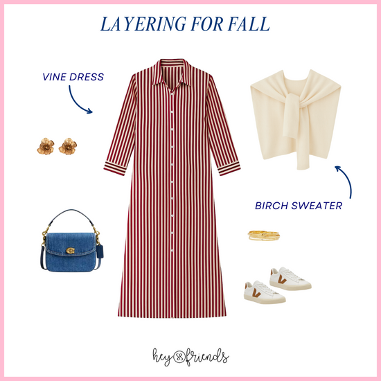 The Birch Sweater is my go-to layering piece for fall. I love its simple, neutral tone and how easy it is to throw on with denim, skirts, or under a jacket. Most days, I even toss it over my shoulders for that effortless, classic look. I wear the size Small for reference.