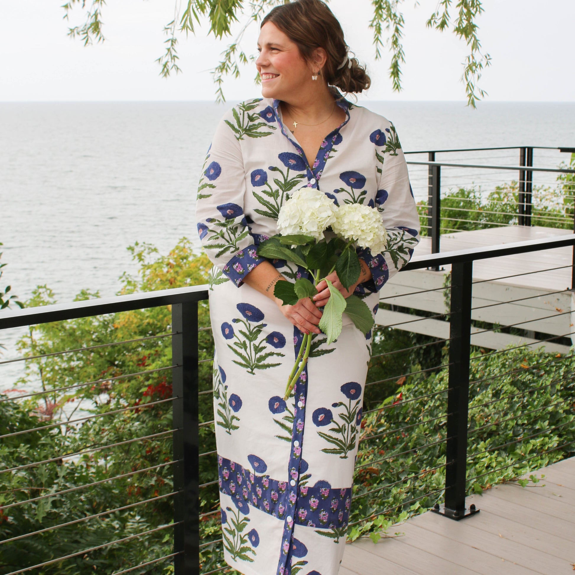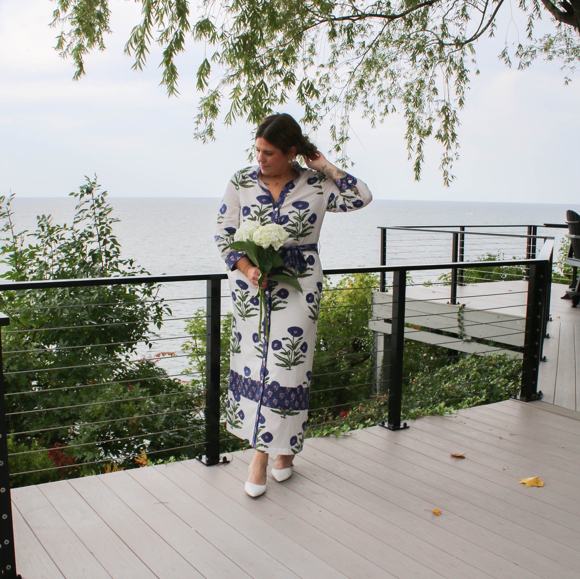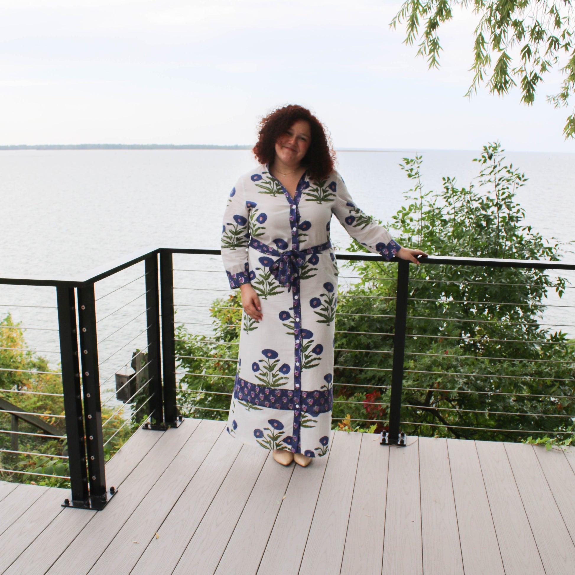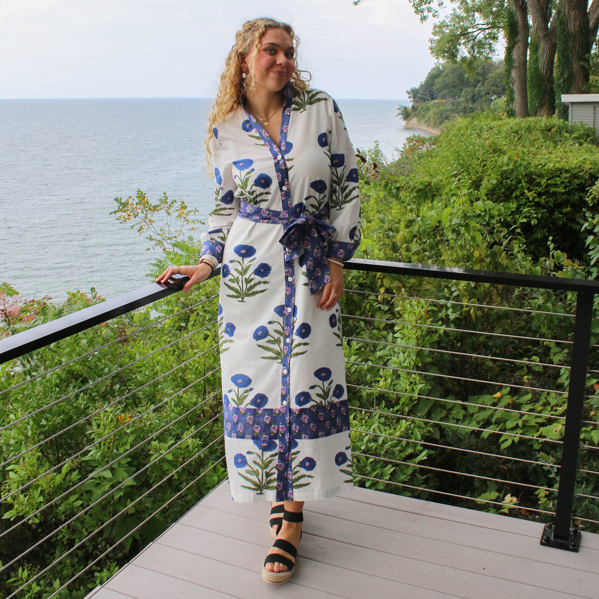 Care: This dress is made out of 100% organic block printed cotton. This fabric was stamped and dyed by hand in India. It is machine washable, we recommend on cold and laying flat to dry. We recommend washing by itself for the first wash.