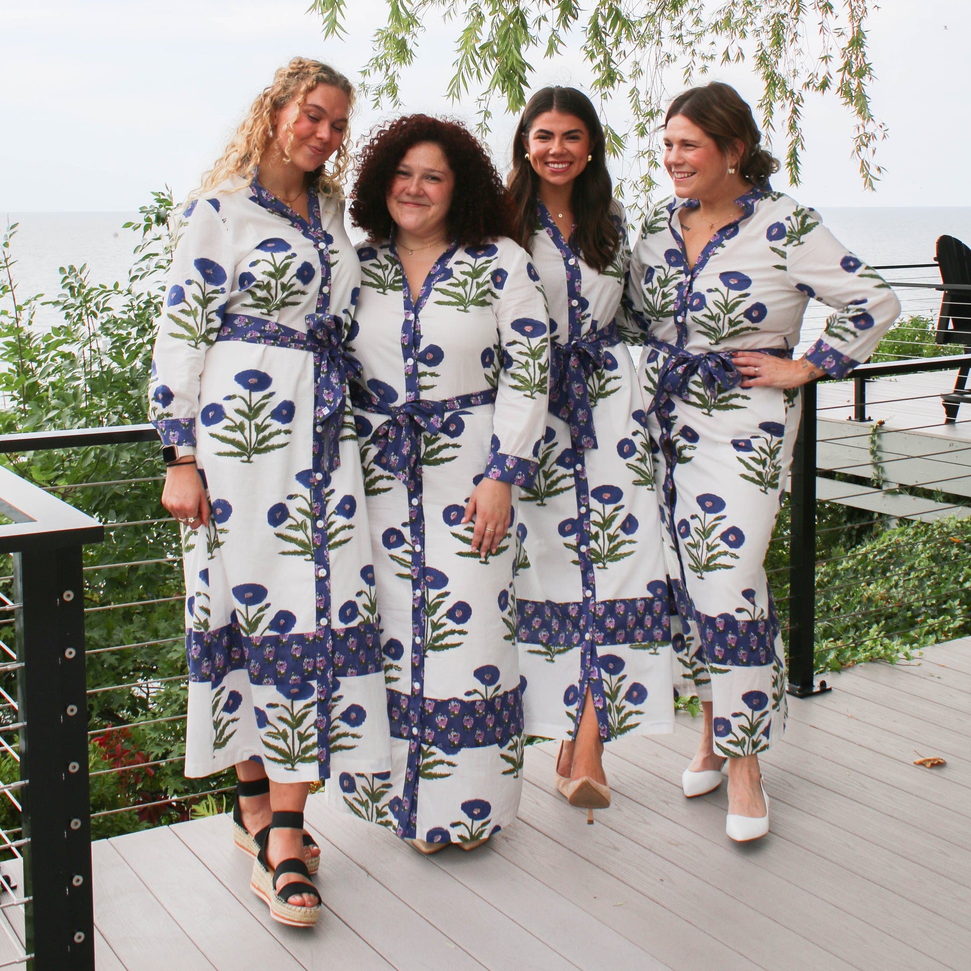 Say hello to our Daphne Dress! This dress features organic fabric that was printed by hand in India. The dresses run true to size, if you are between sizes we recommend you size up one size. These dresses were proudly made in America. For this collection the matching belt is included!
