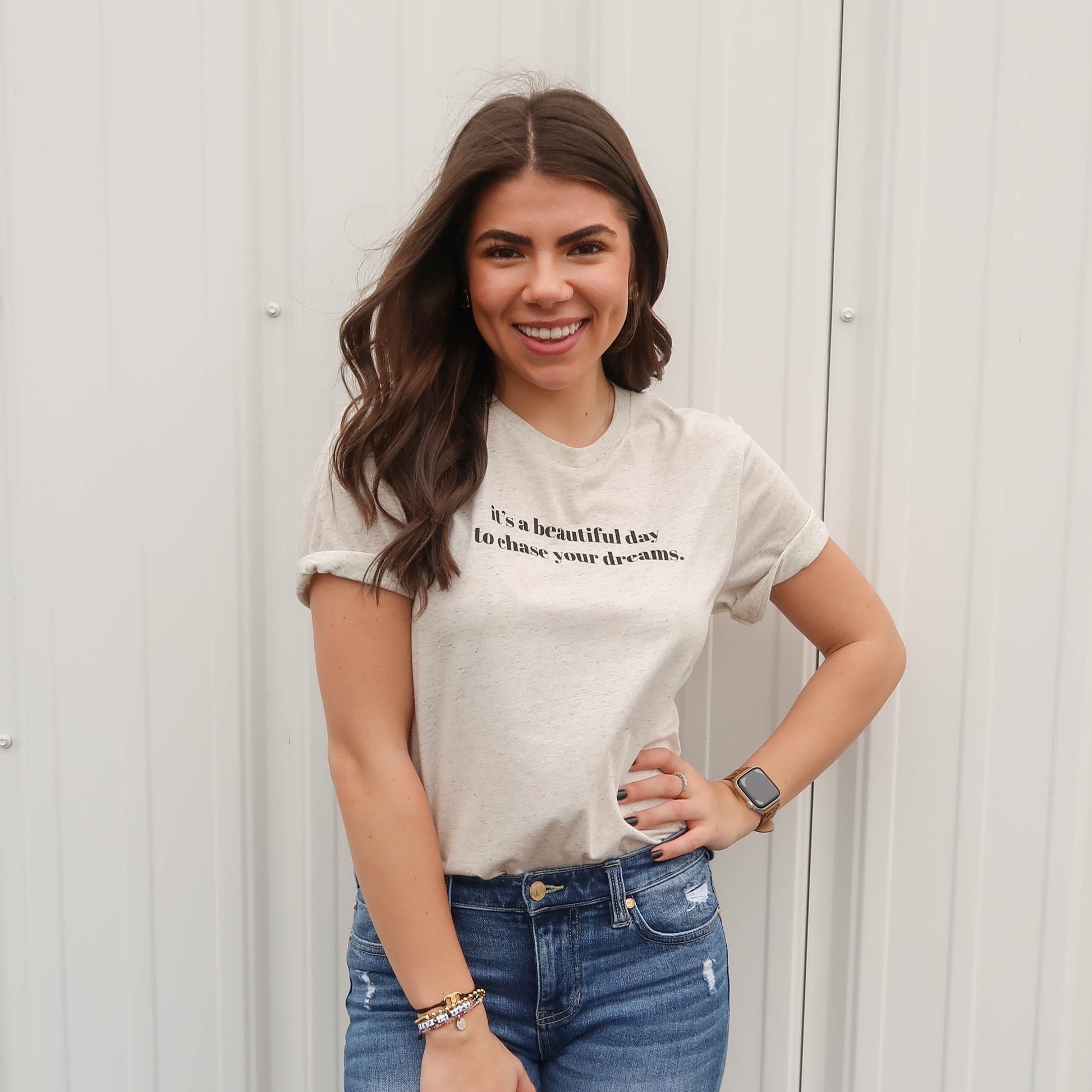DESCRIPTION: This tribled t shirt has a screen printed full front design along with a small logo on the back! This adorable shirt can be worn with a fun cardigan or jean jacket to complete this casual look!