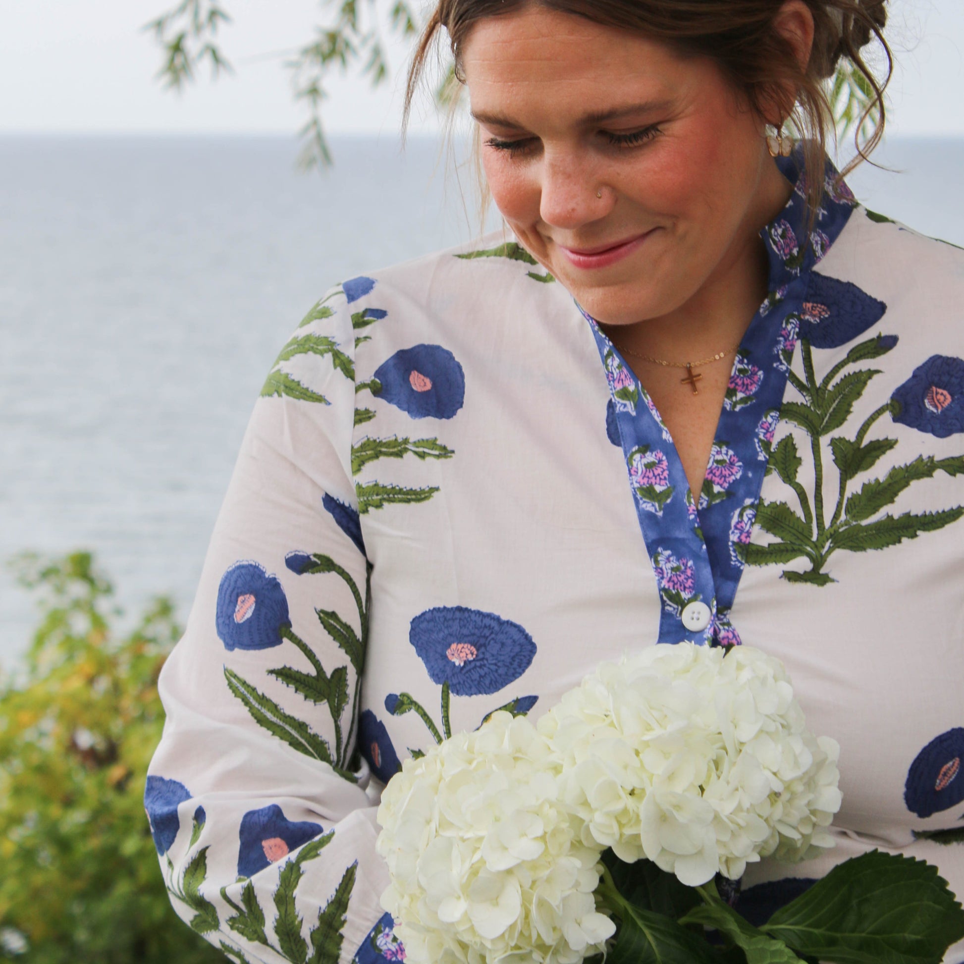 Our bonita blouse features organic fabric that was printed by hand in India. These tops run true to size, however if you are between sizes we recommend you size up one size. This blouse was proudly made in the USA.