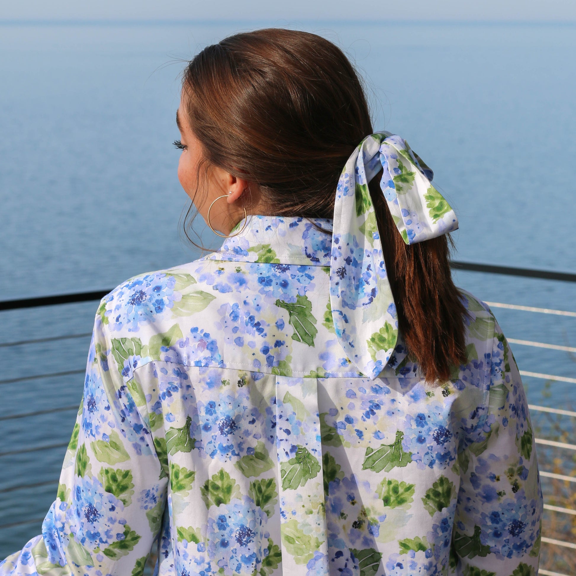 This bow belt matches our new hydrangea dress but you can wear it so many different ways! We offer this belt in three different sizes. They are half sizes and they run true to size. You can style these belts many different ways- In your hair, with your jeans, around your purse straps, the brim of your hat and of course, with the dress!