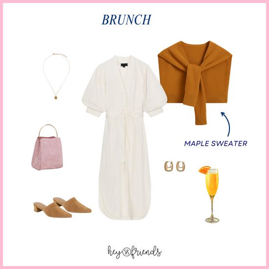 I love the rich brown shade—it feels perfectly autumn and goes with everything in this collection. It’s easy to throw on with denim, skirts, or even draped over my shoulders for that effortless fall look. I wear the size Small for reference!