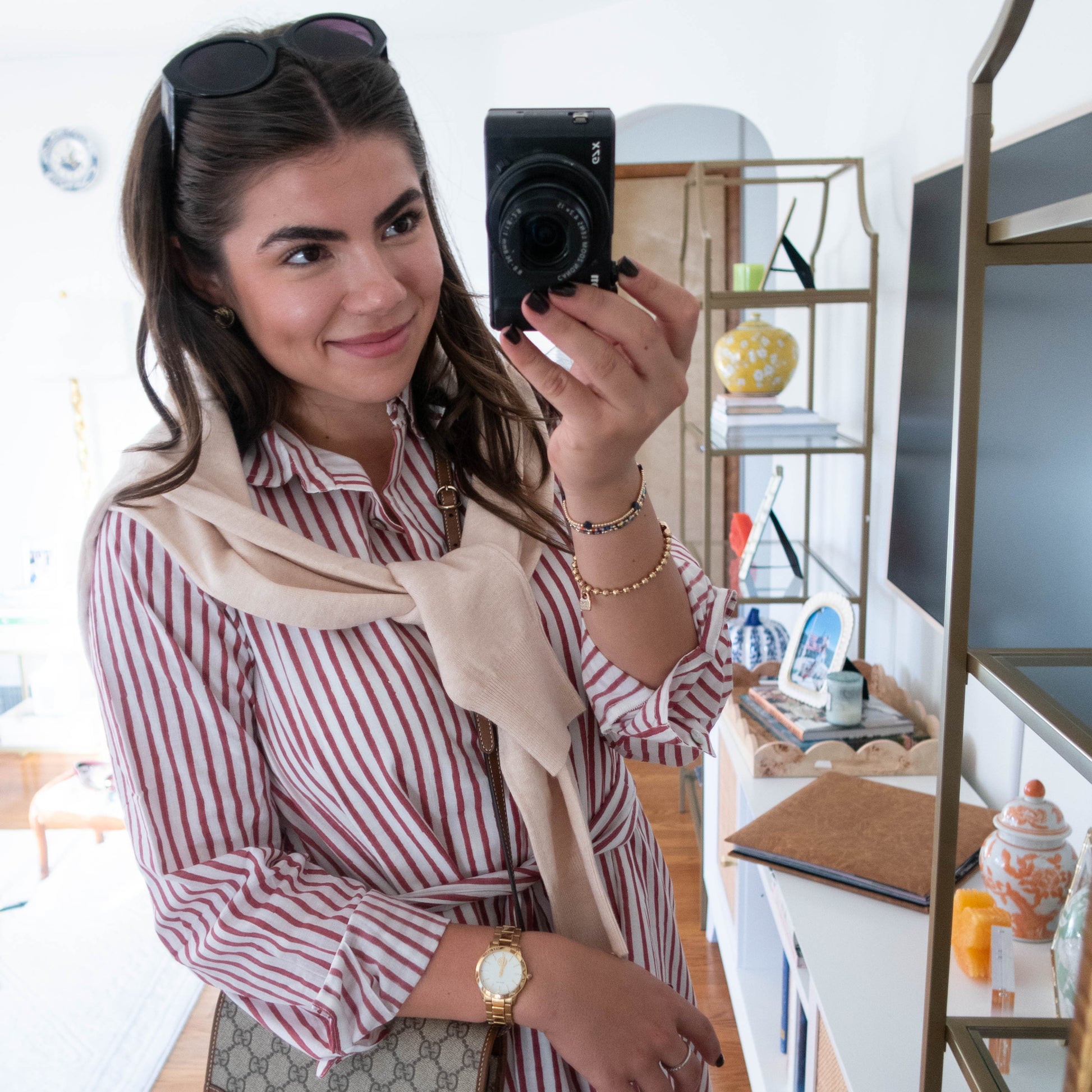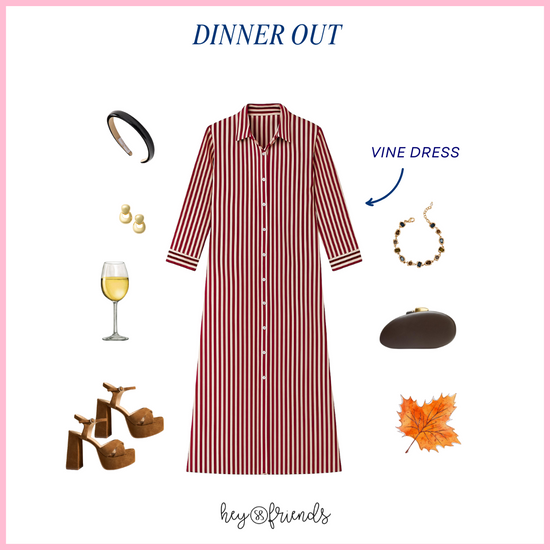 The Vine Dress is one of my go-to fall pieces because it’s so easy and versatile. I love wearing it belted for a polished look or loose for something more relaxed. The stripes give it that coastal feel I always come back to, and I wear the size Small for reference!